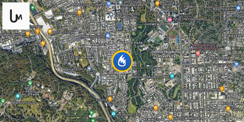 Baltimore firefighters are responding to a two-alarm fire at a in Hampden