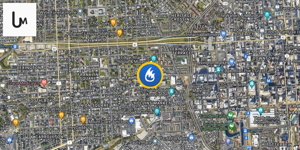 Baltimore police, firefighters, and BGE workers have been operating in the 900 block of West Fayette Street following a report of damage to the front of a building