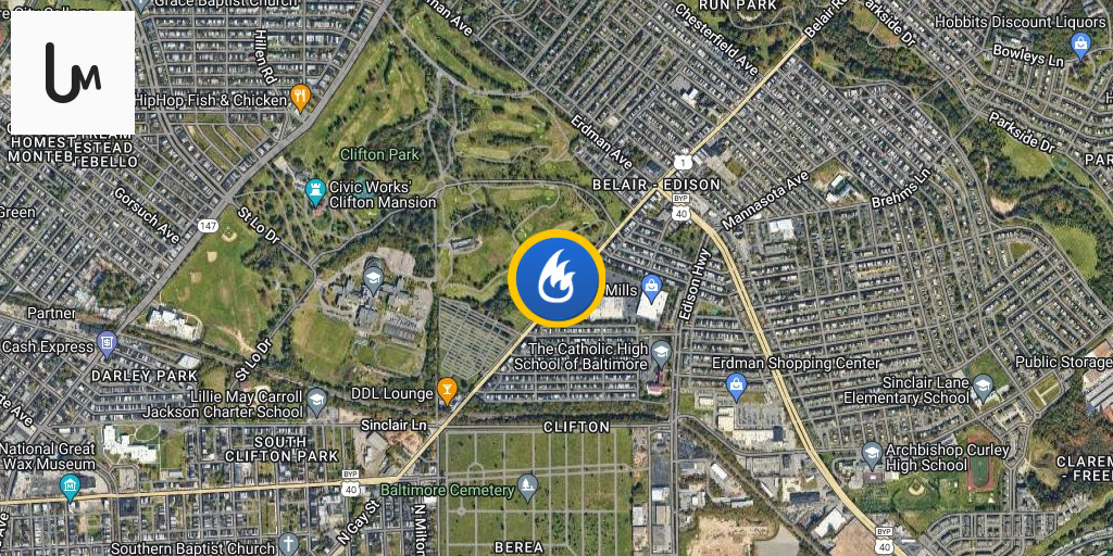Baltimore police have shut down the 2400 block of Belair Road so that firefighters can extinguish a brush fire